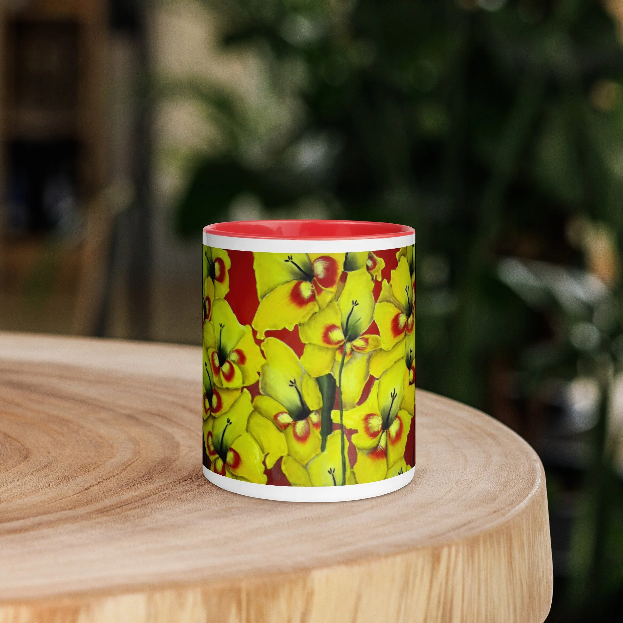 Add a splash of color to your morning coffee or tea ritual! These ceramic mugs not only have a beautiful design on them, but also a colorful rim, handle, and inside, so the mug is bound to spice up your mug rack.