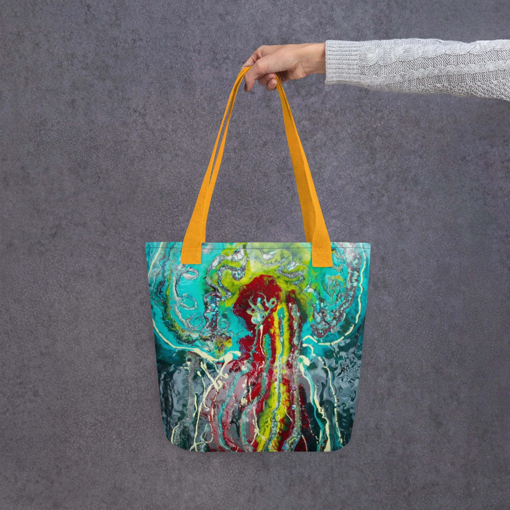 Printful Products go here › #16 Jelly Large in the deep Tote bag Image 1 of 3 Image 2 of 3 Image 3 of 3 #16 Jelly Large in the deep Tote bag $27.00 A spacious and trendy tote bag to help you carry around everything that matters. • 100% polyester • Bag size: 15″ × 15″ (39 × 39 cm) • Capacity: 2.6 US gal (10 l) • Maximum weight limit: 44lbs (20 kg) • Dual handles made from 100% natural cotton bull denim • Handle length: 26″ (67 cm), width 1″ (2.5 cm) • The handles can slightly differ depending on the fulfillment location Color: Black Red Yellow Add To Cart Added! A spacious and trendy tote bag to help you carry around everything that matters. • 100% polyester • Bag size: 15″ × 15″ (39 × 39 cm) • Capacity: 2.6 US gal (10 l) • Maximum weight limit: 44lbs (20 kg) • Dual handles made from 100% natural cotton bull denim • Handle length: 26″ (67 cm), width 1″ (2.5 cm) • The handles can slightly differ depending on the fulfillment location
