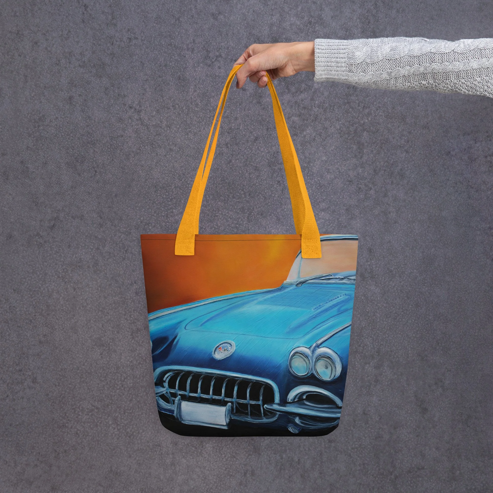 Printful Products go here › #2 Classic Corvette Tote bag Image 1 of 3 Image 2 of 3 Image 3 of 3 #2 Classic Corvette Tote bag $27.00 A spacious and trendy tote bag to help you carry around everything that matters. • 100% polyester • Bag size: 15″ × 15″ (39 × 39 cm) • Capacity: 2.6 US gal (10 l) • Maximum weight limit: 44lbs (20 kg) • Dual handles made from 100% natural cotton bull denim • Handle length: 26″ (67 cm), width 1″ (2.5 cm) • The handles can slightly differ depending on the fulfillment location Color: Black Red Yellow Add To Cart Added! A spacious and trendy tote bag to help you carry around everything that matters. • 100% polyester • Bag size: 15″ × 15″ (39 × 39 cm) • Capacity: 2.6 US gal (10 l) • Maximum weight limit: 44lbs (20 kg) • Dual handles made from 100% natural cotton bull denim • Handle length: 26″ (67 cm), width 1″ (2.5 cm) • The handles can slightly differ depending on the fulfillment location