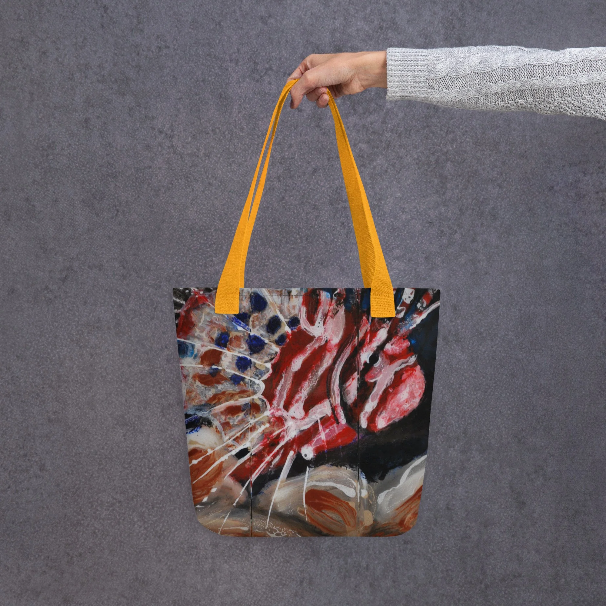 Printful Products go here › #25 Lionfish Tote bag Image 1 of 3 Image 2 of 3 Image 3 of 3 #25 Lionfish Tote bag $27.00 A spacious and trendy tote bag to help you carry around everything that matters. • 100% polyester • Bag size: 15″ × 15″ (39 × 39 cm) • Capacity: 2.6 US gal (10 l) • Maximum weight limit: 44lbs (20 kg) • Dual handles made from 100% natural cotton bull denim • Handle length: 26″ (67 cm), width 1″ (2.5 cm) • The handles can slightly differ depending on the fulfillment location Color: Black Red Yellow Add To Cart Added! A spacious and trendy tote bag to help you carry around everything that matters. • 100% polyester • Bag size: 15″ × 15″ (39 × 39 cm) • Capacity: 2.6 US gal (10 l) • Maximum weight limit: 44lbs (20 kg) • Dual handles made from 100% natural cotton bull denim • Handle length: 26″ (67 cm), width 1″ (2.5 cm) • The handles can slightly differ depending on the fulfillment location