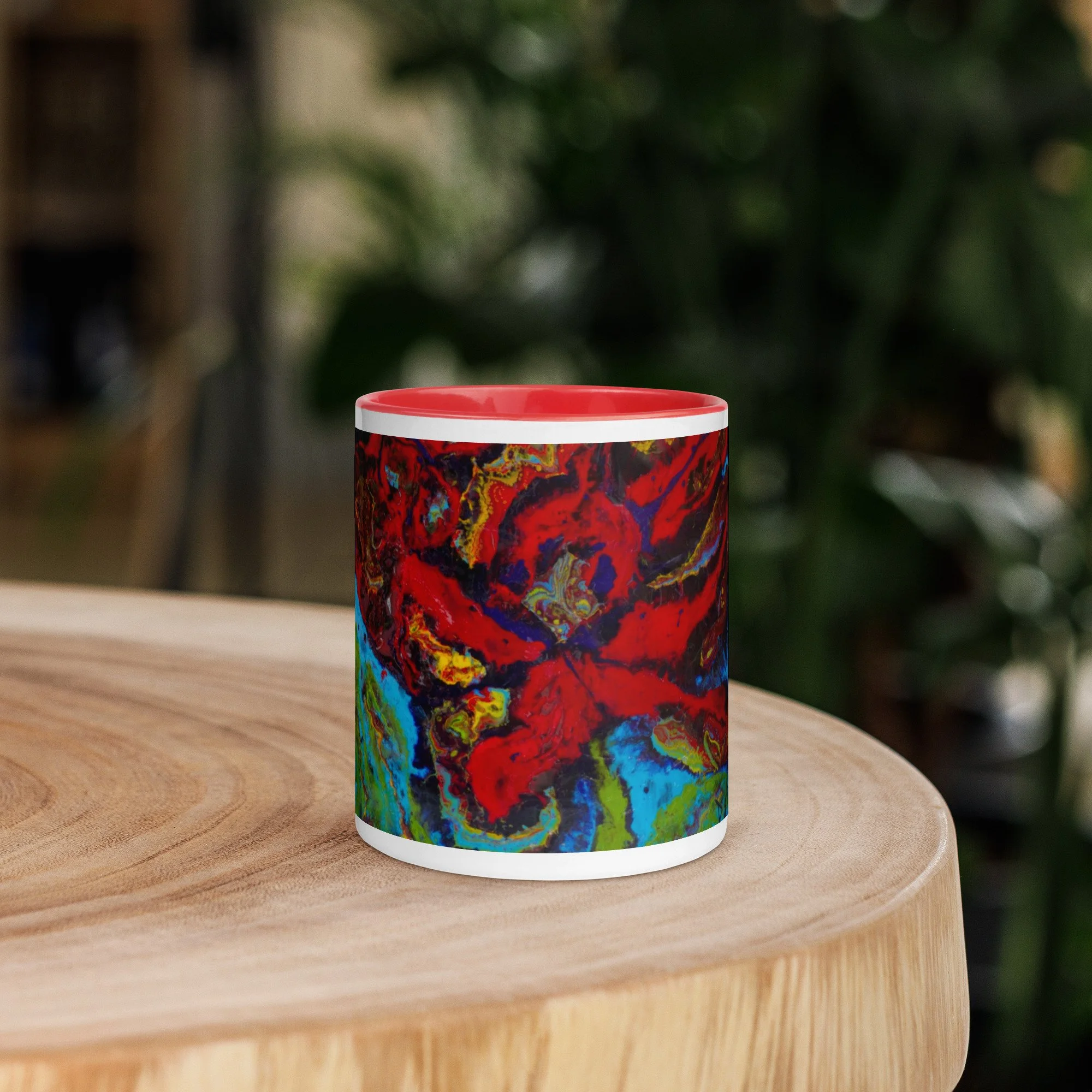 #4 Flowers in Red 11" Mug with Color inside